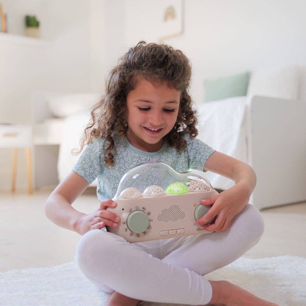 Avec des univers enchanteurs à explorer - Océan, Forêt, Espace et Village, CloudBox™ contribue à apaiser les bébés et à plonger les enfants dans des mondes magiques qui contribuent à développer leur imagination.