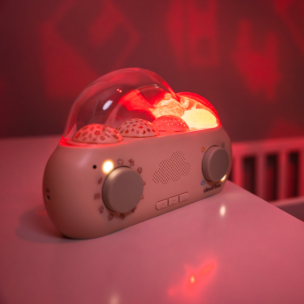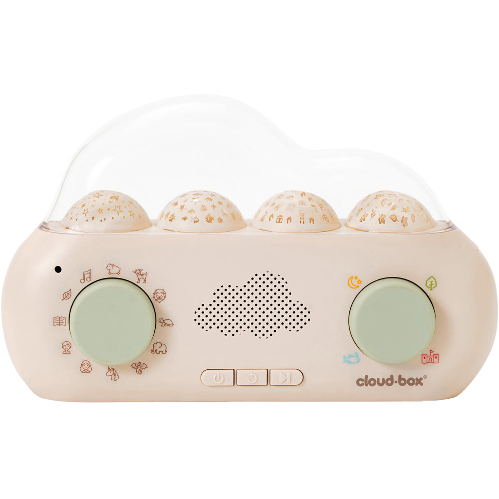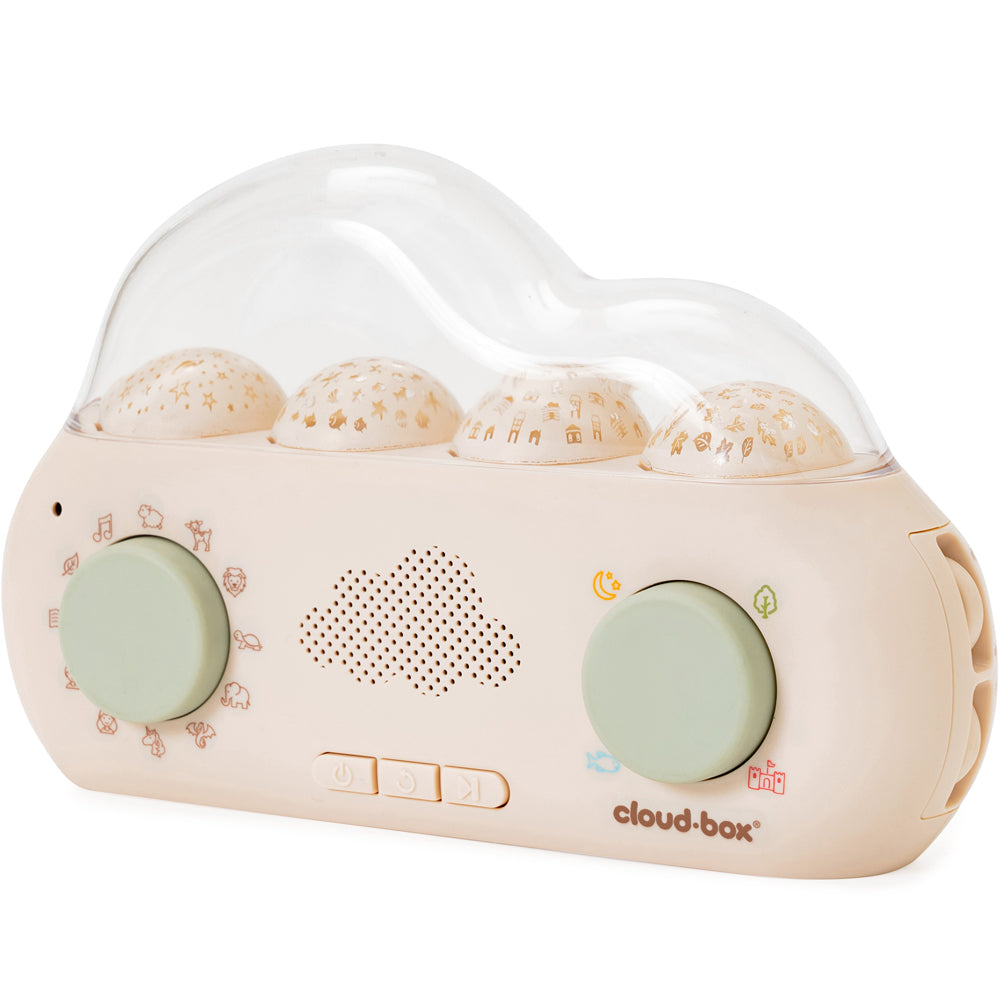 CloudBox™ propose - 36 histoires originales, - 8 mélodies et 8 bruits blancs avec 4 projections lumineuses synchronisées.