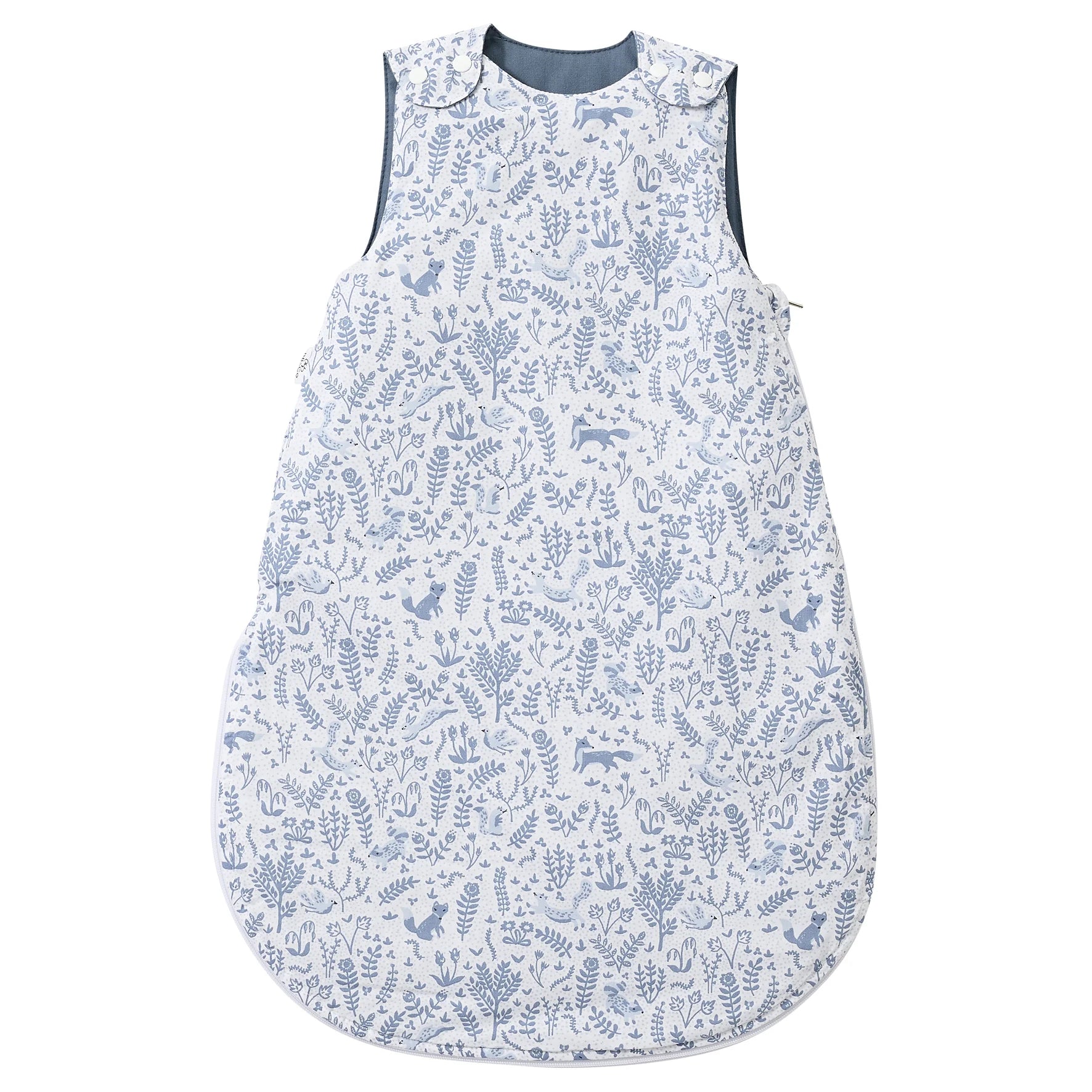 Une gigoteuse entièrement doublée et ouatinée en coton imprimé. Très douillette, cette gigoteuse a un contour zippé et des bretelles pressionnées pour placer bébé sans effort.
