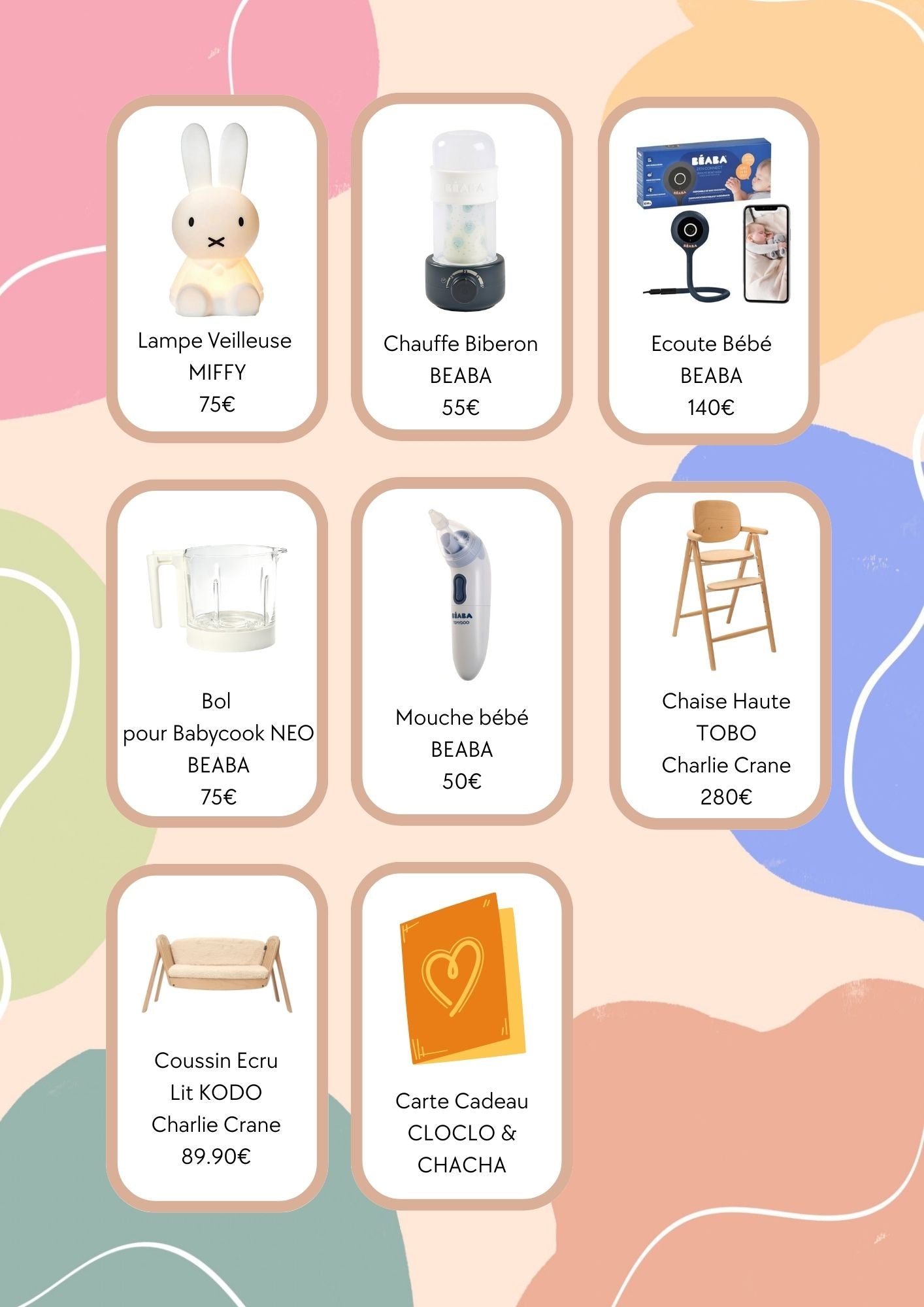 Participez à la liste de naissance de Justine et Maxime en envoyant une carte cadeau CLOCLO & CHACHA.