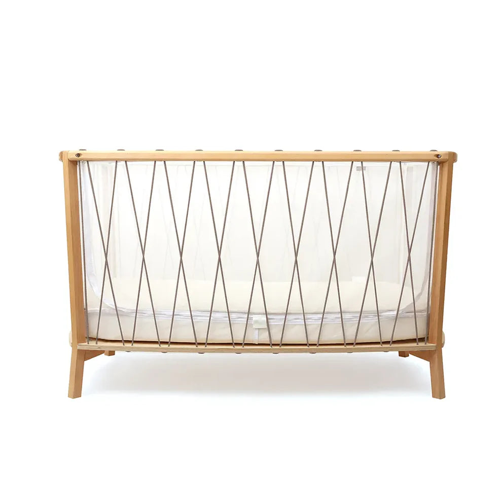Les lacets lui confèrent une vraie légèreté tout en étant plus sécurisants que des barreaux entre lesquels le bébé pourrait se coincer un membre.