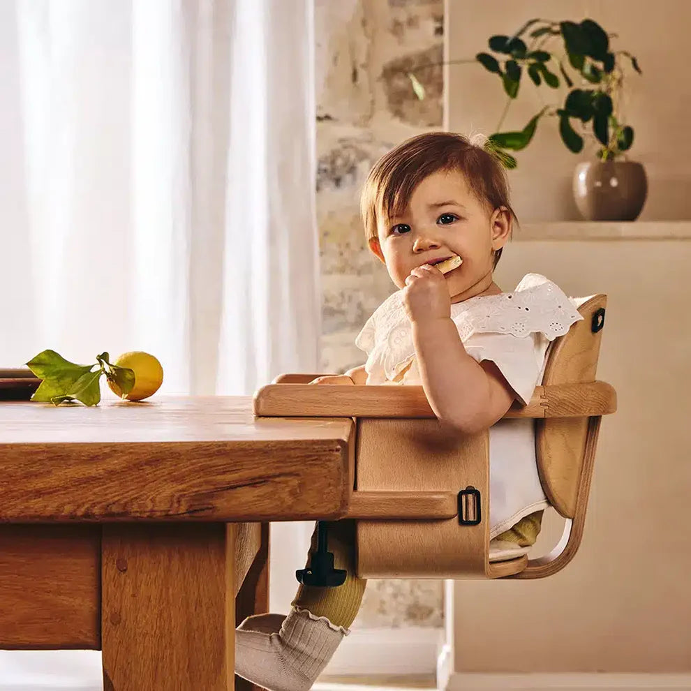 Simple et élégant, fabriqué en bois de hêtre naturel, le siège de table HIKO s’accroche en un clin d’oeil sur presque tous les types de tables (ep. comprise entre 1,5 et 5 cm).