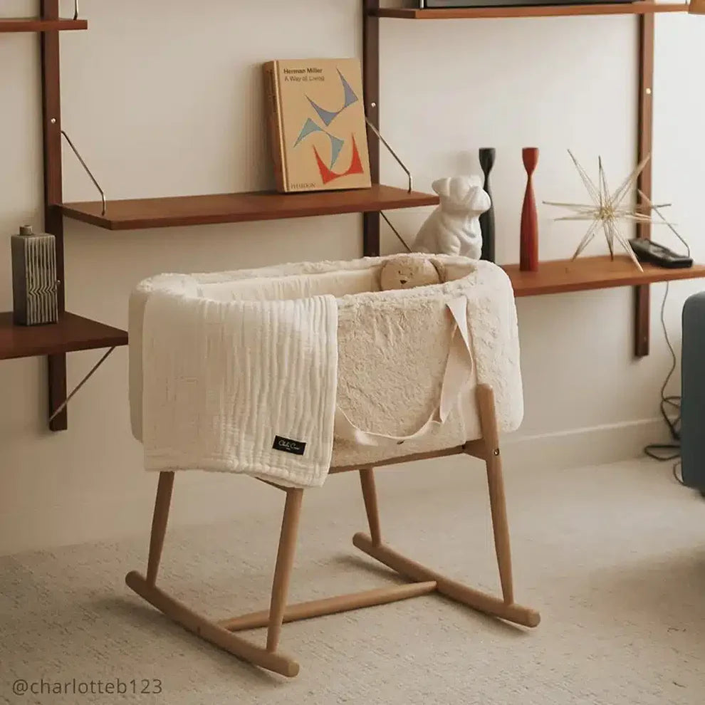 Ce support en bois naturel, permet au couffin KUKO de se transformer en un clin d’œil en berceau au doux balancement.